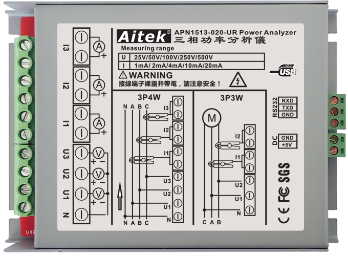 APN1513系列三相功率分析模块具有5档电压量程和5档电流量程。