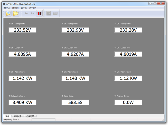 APN1513系列三相功率分析模块标配的记录软件,可以通过RS485通讯接口,采用Modbus-RTU协议,联机读取多台仪器参数,实现测量参数趋势曲线记录。